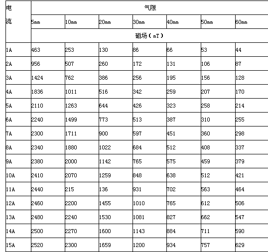 2.5 剩 磁:≤10mT (工作氣隙10mm時(shí))